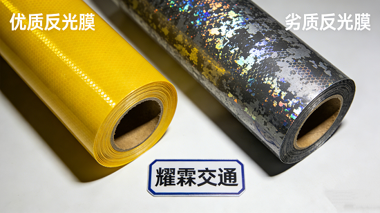 交通标牌的夜间警示效果,核心全在反光膜的品质——优质反光膜是夜间行车的“微光守护者”,劣质膜则暗藏安全隐患。耀霖交通作为成都交通标牌厂家,将结合行业标准与实操经验,教你3步快速区分反光膜好坏,轻松避开采购陷阱。